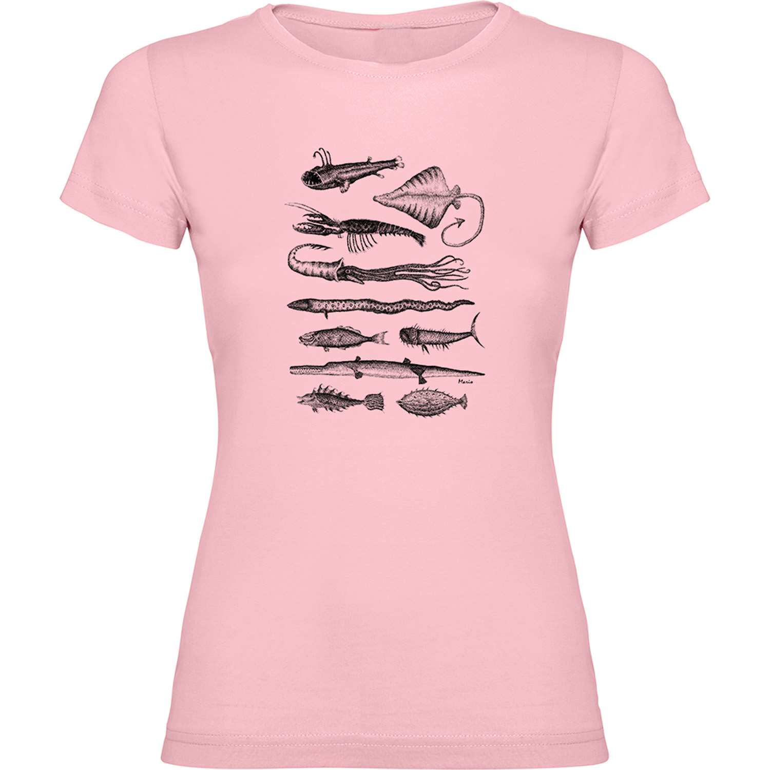 Obra «Peces» del artista Mario Cutillas impresa en alta resolución sobre camiseta mujer 100% algodón de diferentes colores y tallas