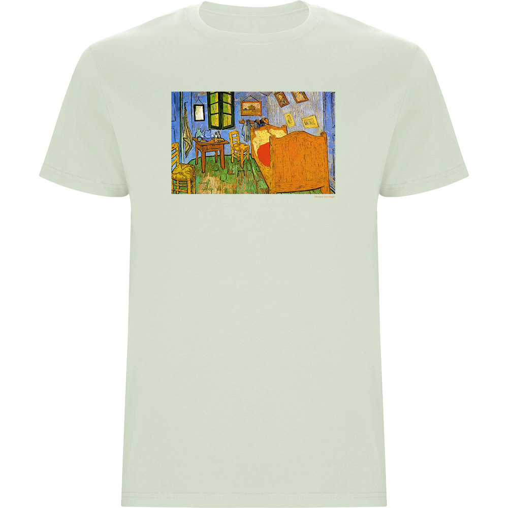Ilustración «Dormitorio en Arlés» de Vincent van Gogh impresa en alta resolución sobre camiseta unisex 100% algodón de diferentes colores y tallas