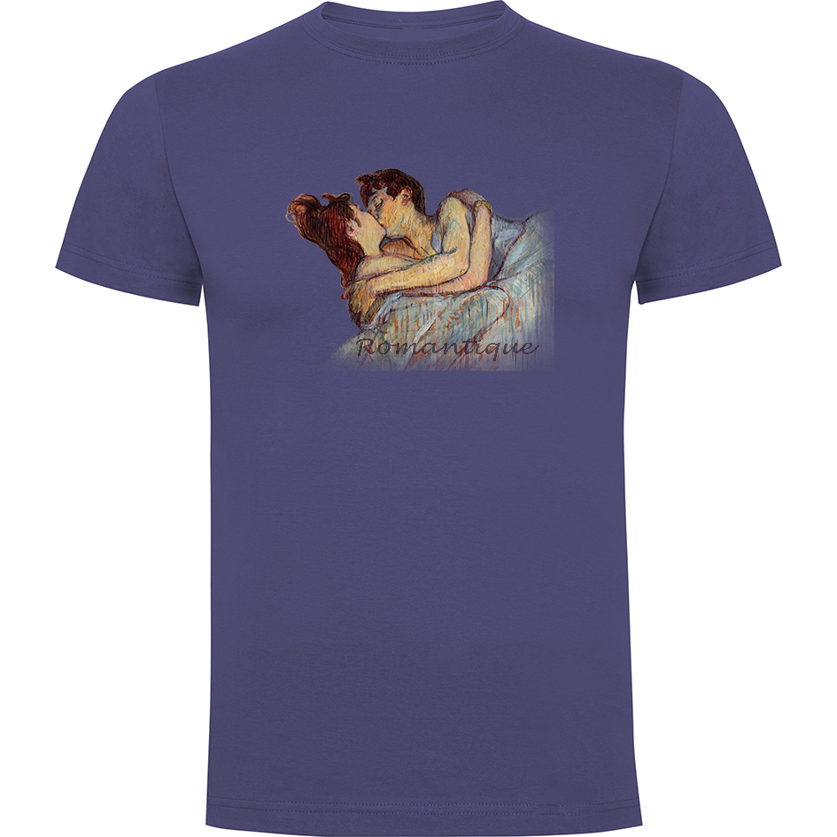 Ilustración«Romantique» basada en la obra El beso en la cama de Toulouse-Lautrec impresa en alta resolución sobre camiseta unisex 100% algodón de diferentes colores y tallas