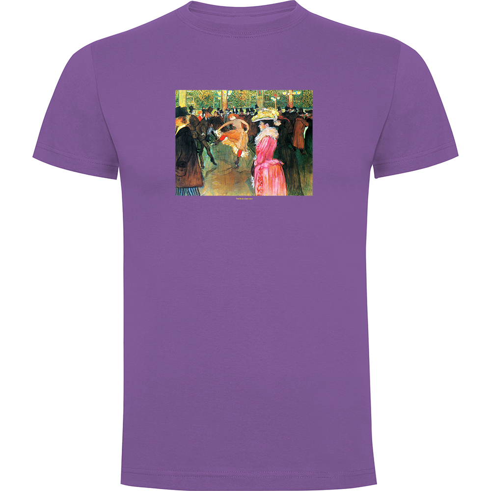 Ilustración «En el Moulin Rouge» de Toulouse-Lautrec impresa en alta resolución sobre camiseta unisex 100% algodón de diferentes colores y tallas