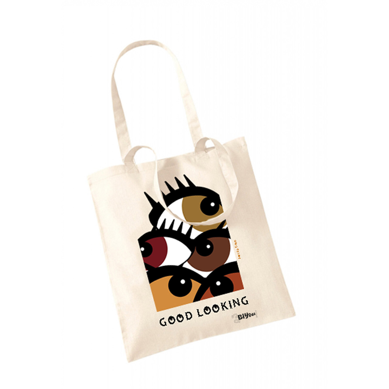 Obra «Gook looking» a la venta» del artista José Manuel Mateo impresa en alta resolución sobre bolsas 100% algodón. Capacidad 10 litros. Medidas 38 x 42 cm.