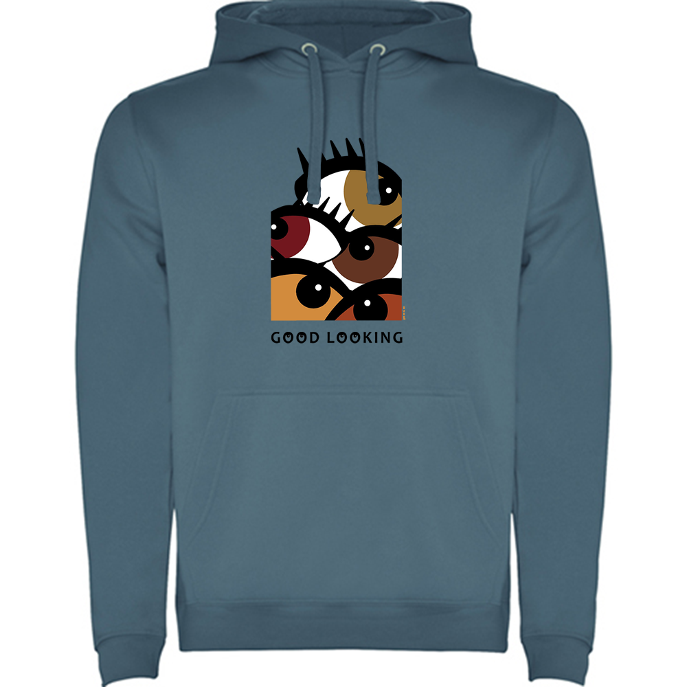Obra «Good looking» del artista José Manuel Mateo impresa en alta resolución sobre sudadera unisex 50% algodón y 50% poliéster de diferentes colores y tallas.