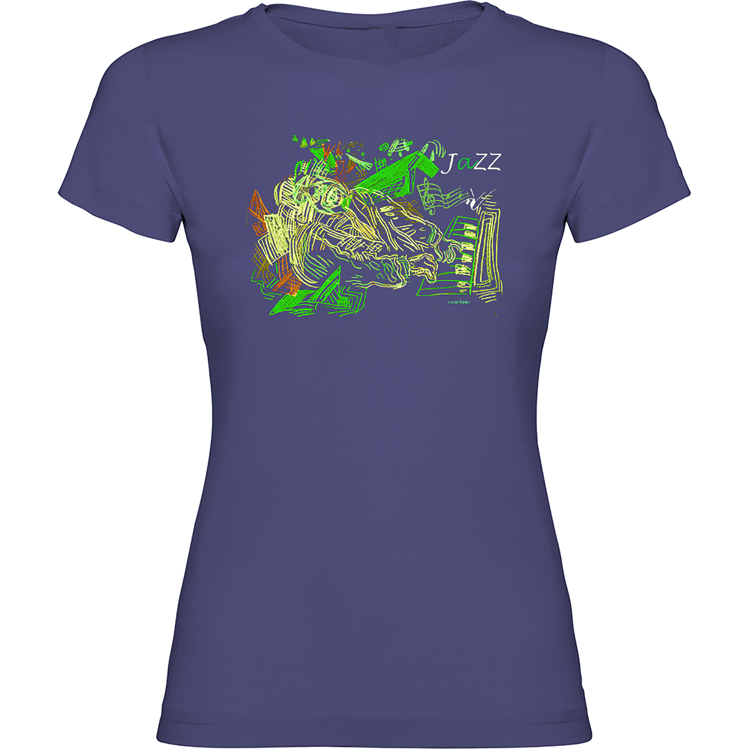 Obra «Jazz» del artista Isaac Soler impresa en alta resolución sobre camiseta mujer 100% algodón de diferentes colores y tallas