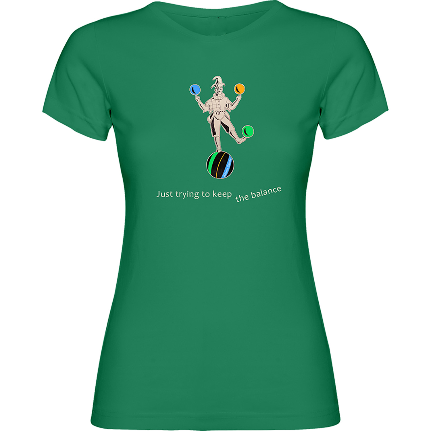 Obra «Manteniendo el equilibrio» del artista Álvaro García impresa en alta resolución sobre camiseta mujer 100% algodón de diferentes colores y tallas