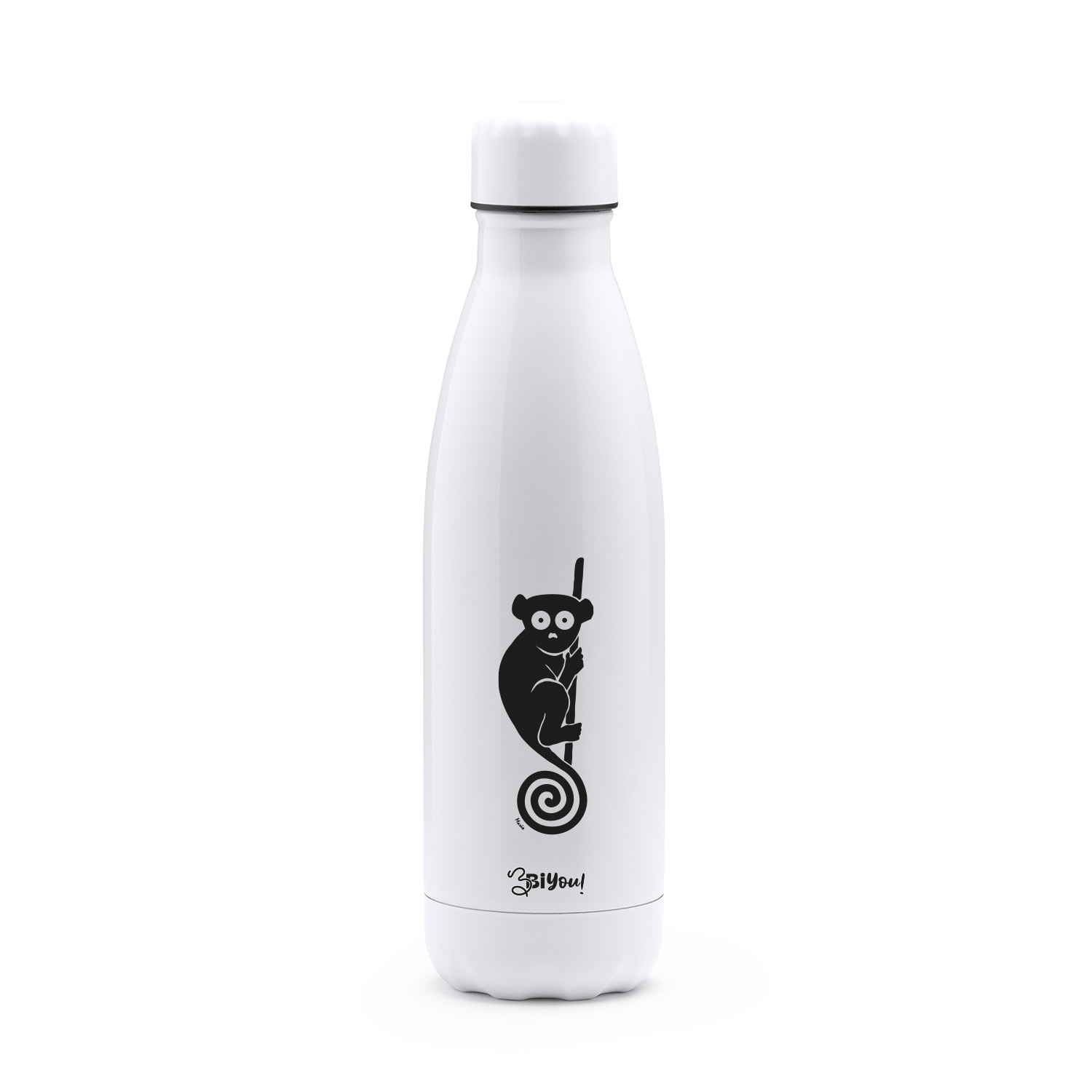 Obra «Lemur» del artista Mario Cutillas con técnica de sublimación sobre botella y botella termo.