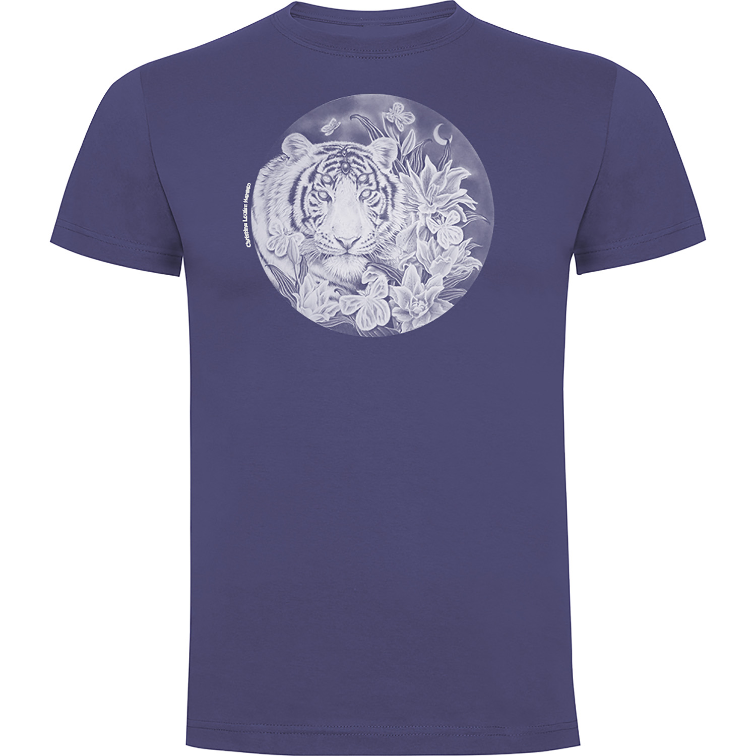 La obra está estampada con tecnología de alta definición sobre una camiseta unisex de manga corta. La prenda tiene cuello redondo de 4 capas en canalé 1×1 con cubrecosturas de hombro a hombro. Costuras laterales. La camiseta es 100% algodón, punto liso, 165 g/m² (Color gris: 85% algodón / 15% viscosa).