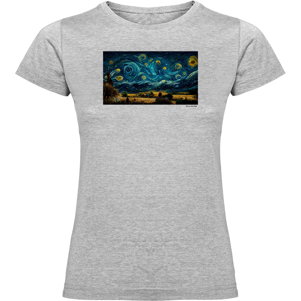Ilustración «Noche estrellada» de Vincent van Gogh impresa en alta resolución sobre camiseta mujer 100% algodón de diferentes colores y tallas