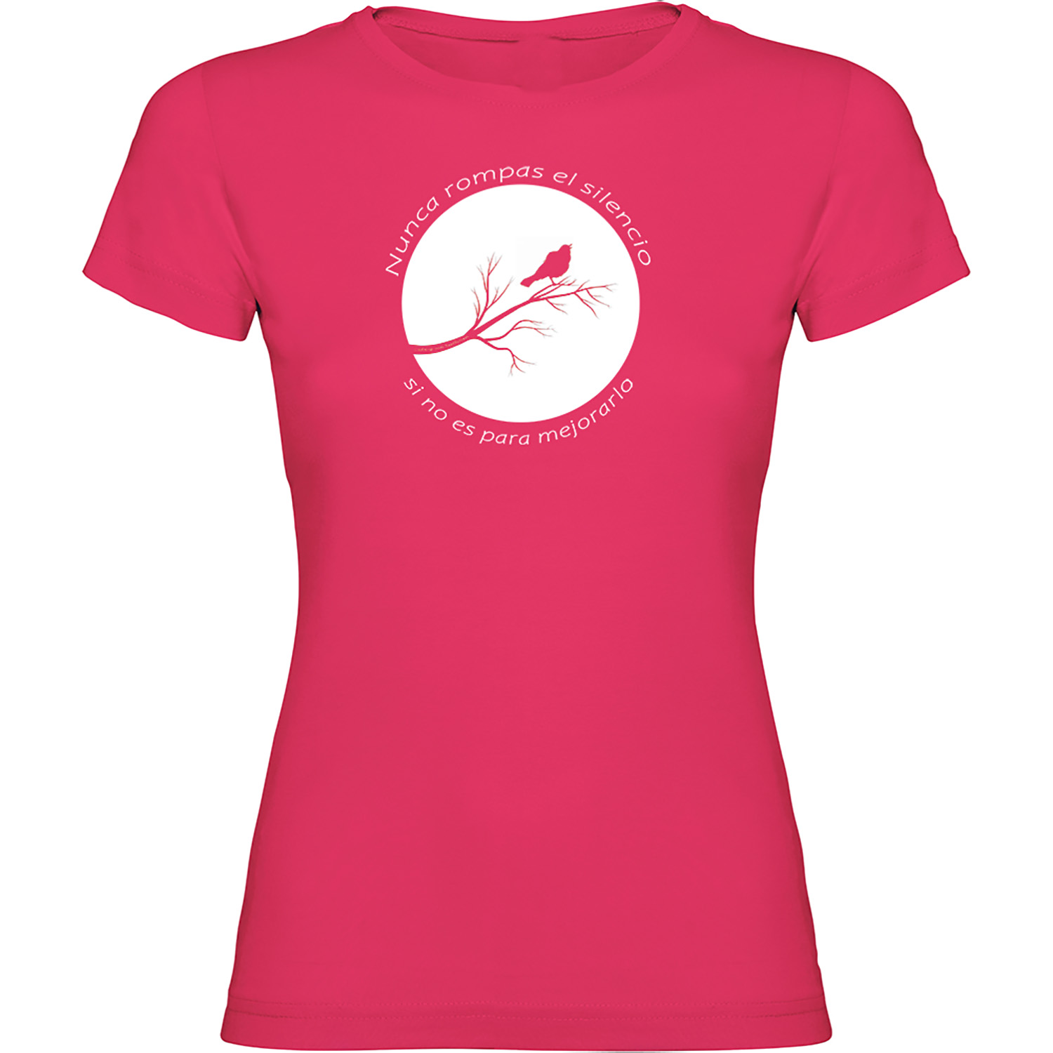 Cita célebre «Nunca rompas el silencio si no es para mejorarlo» de Ludwig van Beethoven impresa en alta resolución sobre camiseta mujer 100% algodón de diferentes colores y tallas