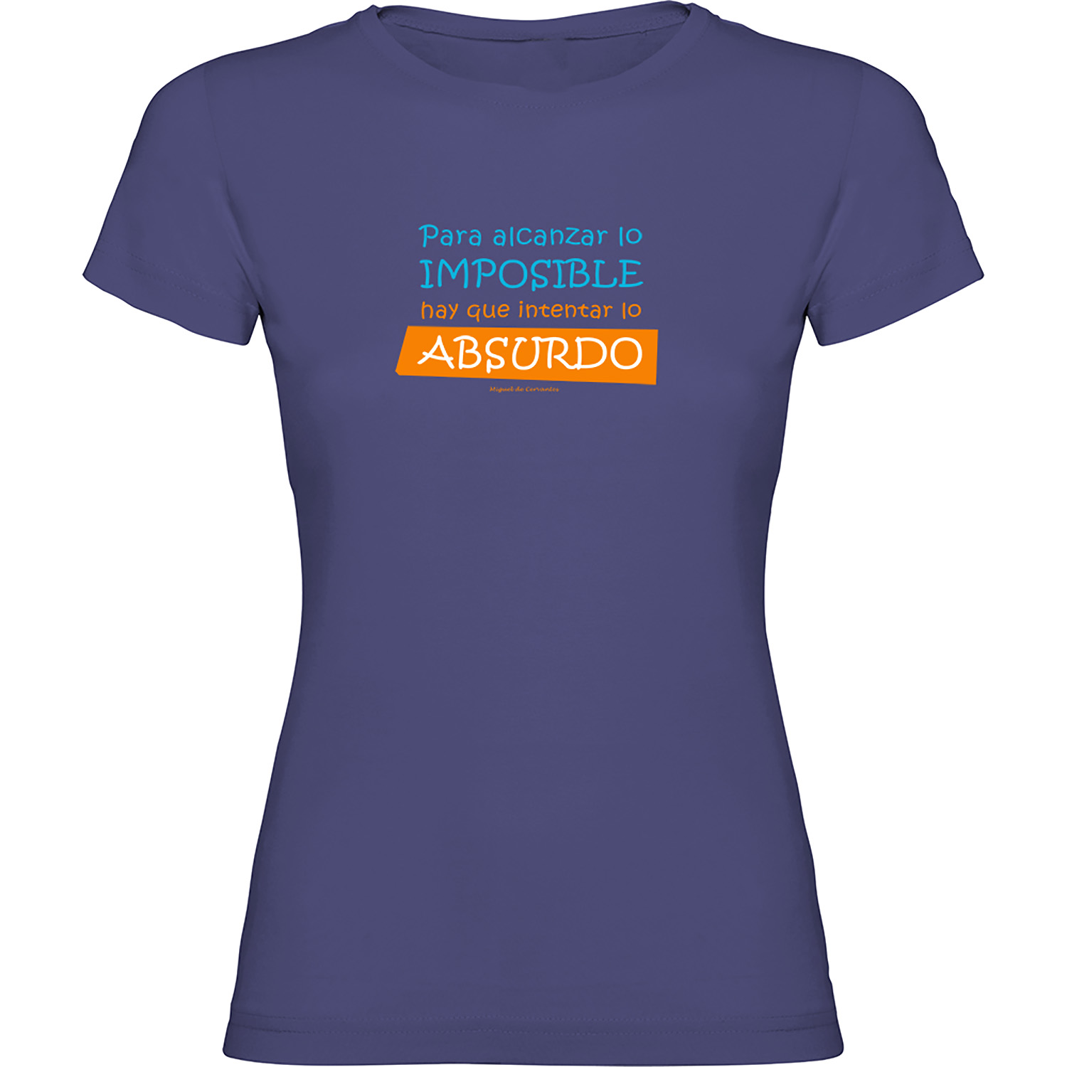 Cita célebre «Para alcanzar lo imposible hay que intentar lo absurdo» de Miguel de Cervantes impresa en alta resolución sobre camiseta mujer 100% algodón de diferentes colores y tallas
