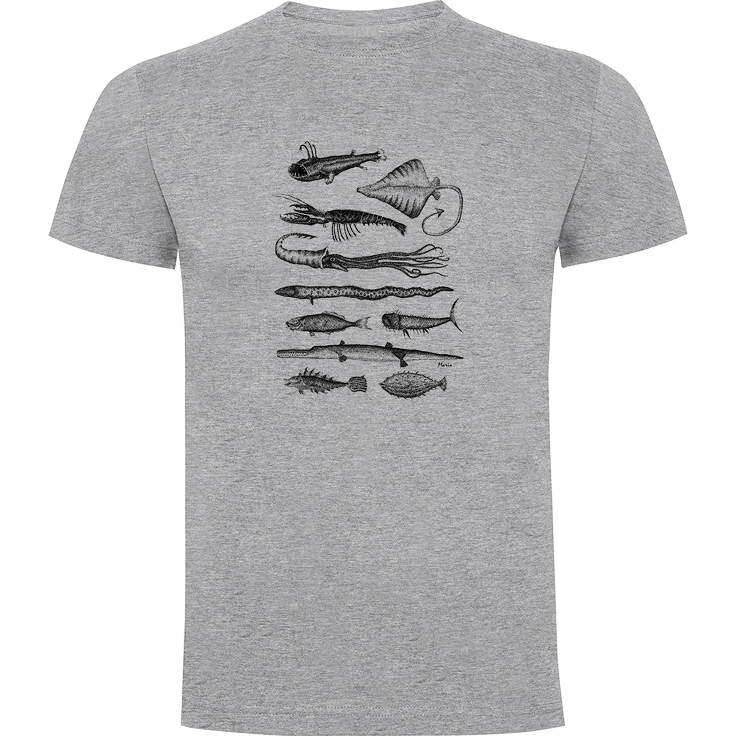Obra «Peces» del artista Mario Cutillas impresa en alta resolución sobre camiseta unisex 100% algodón de diferentes colores y tallas