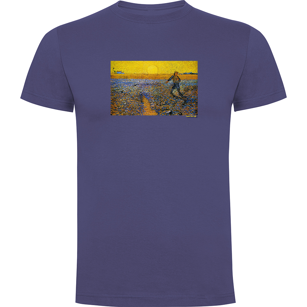 Ilustración «Sembrador a la puesta del sol» de Vincent van Gogh impresa en alta resolución sobre camiseta unisex 100% algodón de diferentes colores y tallas