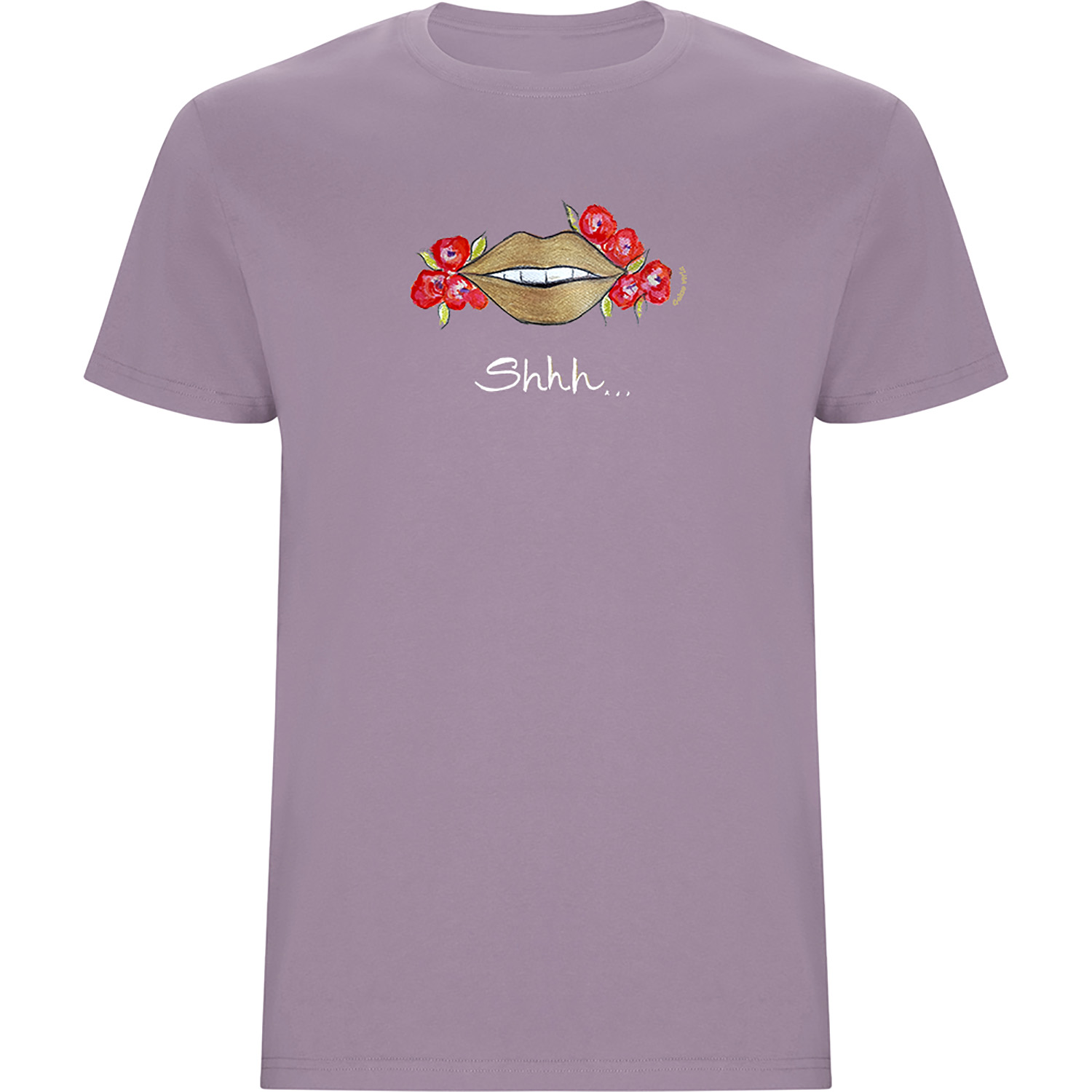 Obra «Shhh…» del artista Gelué Virla impresa en alta resolución sobre camiseta unisex 100% algodón de diferentes colores y tallas