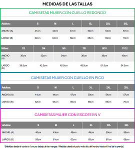 | Modelo de prenda | Cuello redondo (camiseta mujer), Cuello en pico (camiseta de mujer), Cuello en V (camiseta mujer) |