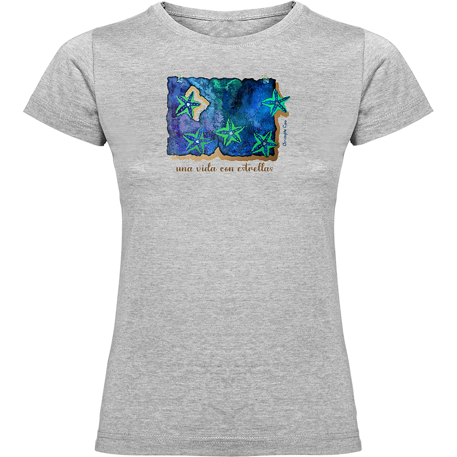 Obra «Una vida con estrellas» del artista Christophe Caro impresa en alta resolución sobre camiseta mujer 100% algodón de diferentes colores y tallas