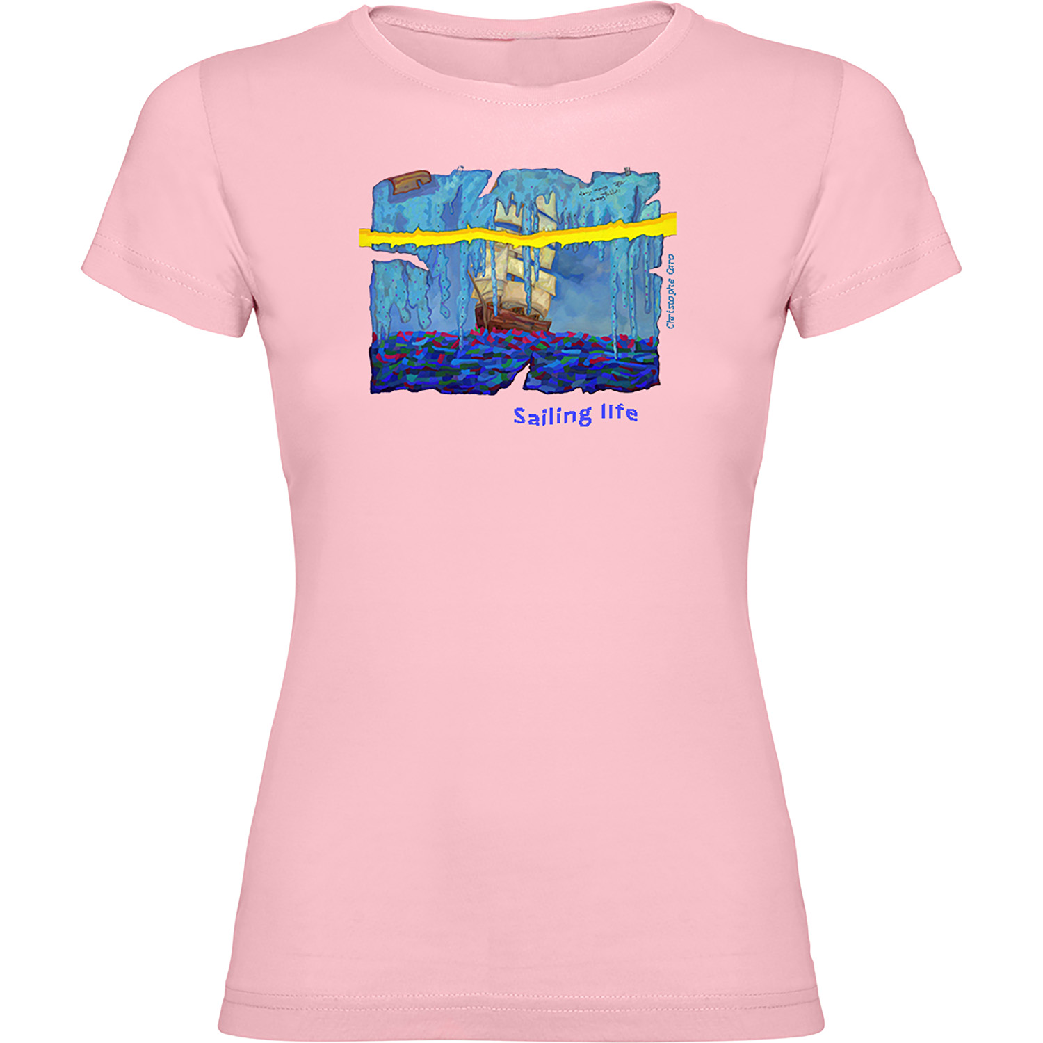 Obra «Vida de navegación» del artista Christophe Caro impresa en alta resolución sobre camiseta mujer 100% algodón de diferentes colores y tallas
